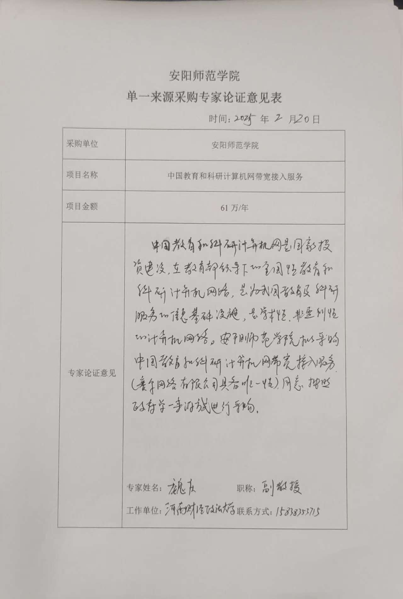 根據《教育部關于同意CERNET管委會委托賽爾網絡有限公司運營CERNET的批復》(教技發(fā)函【2001】11號)內容,賽爾網絡有限公司承擔CERNET的運營服務,是CERNET唯一合法的運營單位。依據河南省教育廳印發(fā)的《關于在全省教育系統開展網絡安全綜合治理行動的通知》《河南省高校信息化發(fā)展水平評估指標體系(試行)的通知》(教科技〔2018〕278號)內容要求。結合安陽師范學院自2001年接入CERNET,一直使用aynu.edu.cn域名和現有的16個C類IPv4地址、/48 IPv6教育網地址的實際情況,為保障學校域名等各項服務的延續(xù)使用。按照《中華人民共和國政府采購法》相關規(guī)定,經組織行業(yè)專家論證,擬采用單一來源采購方式。